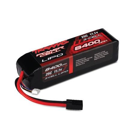 11.1v 8400mah LiPo Battery 25C Configuration: 3S2P Traxxas High-Current Connector Watt Hours: 93.24 Dimensions(mm): 155x44x45 Shipping Weight 2 Pounds