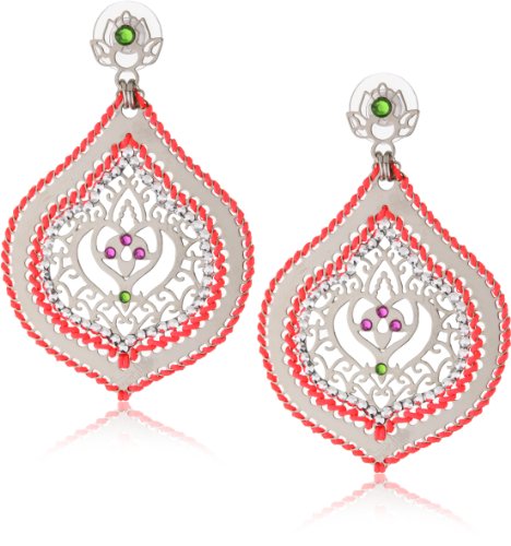 Crystal studded earring with special neon thread outline Very lightweight and special laser-cut design Total Weight of earrings are 11 Grams Made in Israel